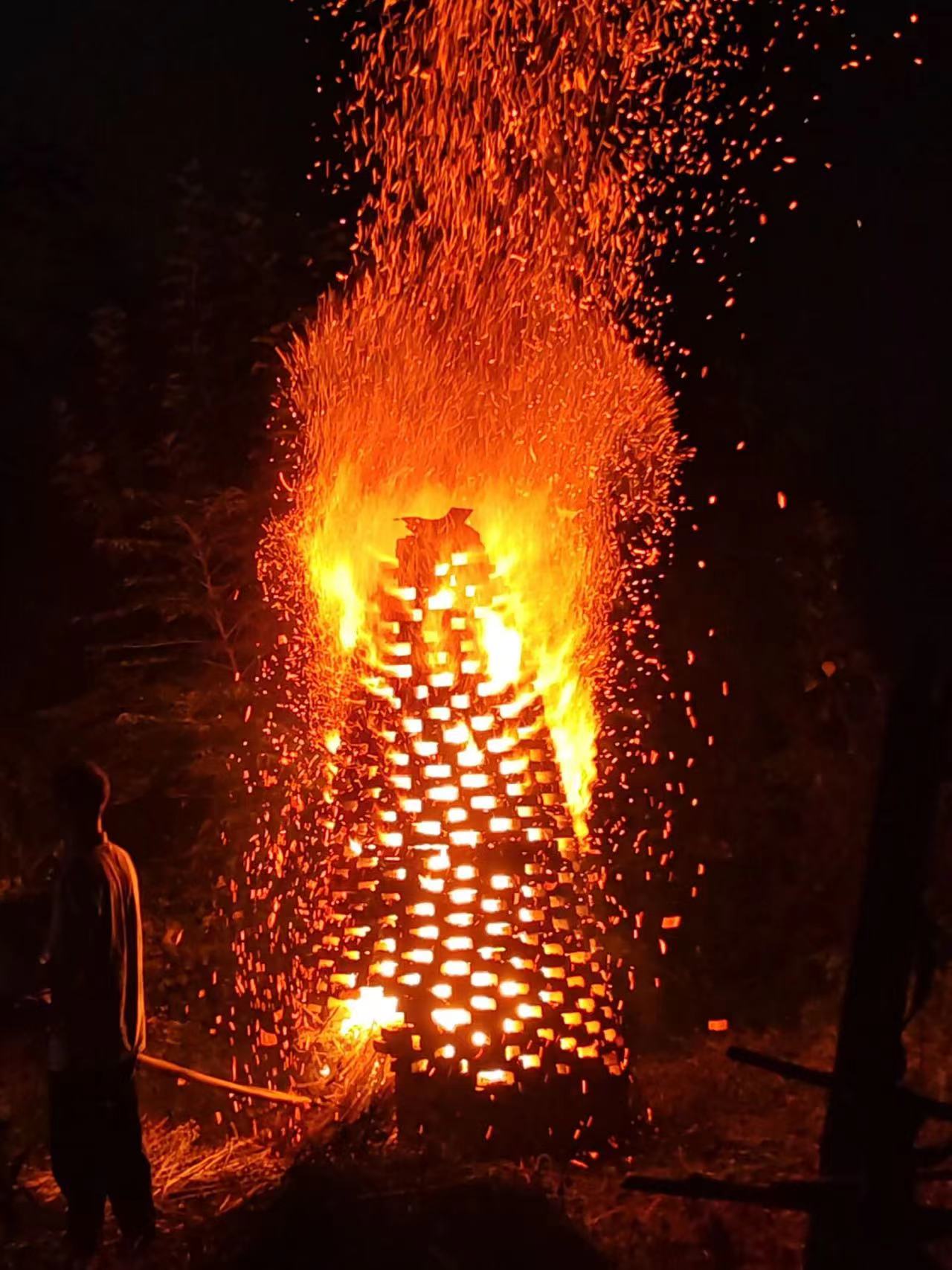 夜色降临后,村里的男女老少,包括不少住在县城、集镇的人也赶回来,大家聚集在一起,烧塔、放烟花、赏月、寒暄、闲聊,特别有传统的节日氛围。