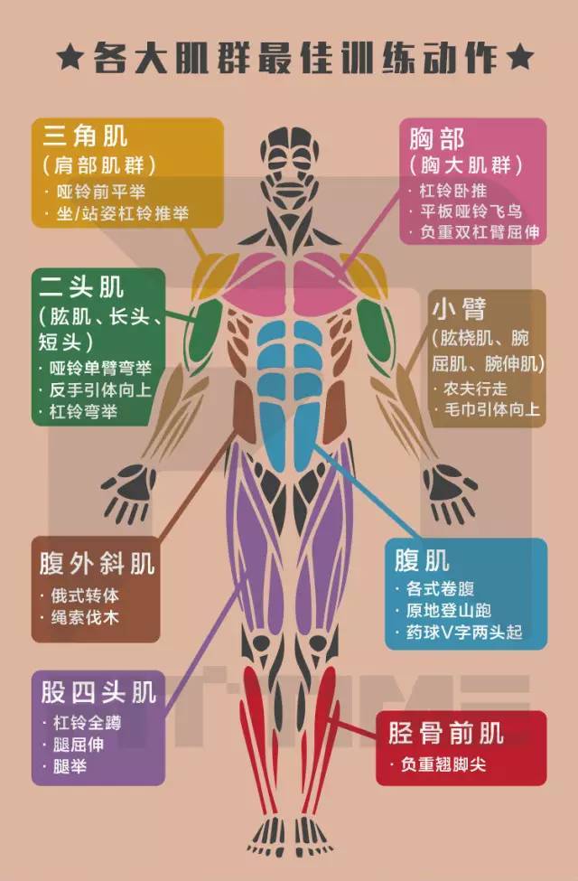 各大肌群最佳训练动作:
